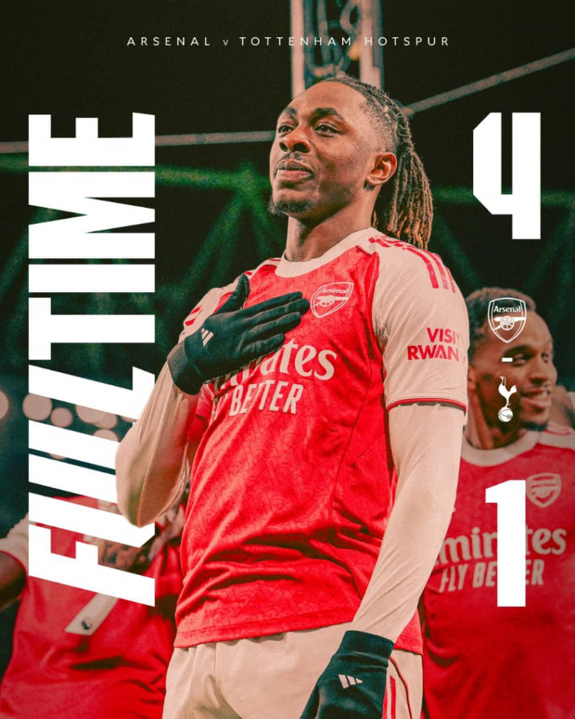 Eberechi Eze was the undisputed star of the North London Derby, scoring a brilliant hat-trick as Arsenal completely outclassed Tottenham Hotspur on their way to a 4-1 Premier League humiliation. The comprehensive victory extends the Gunners’ longest winning streak in North London derbies this century to four matches and sends them six points clear at the top of the PL table.