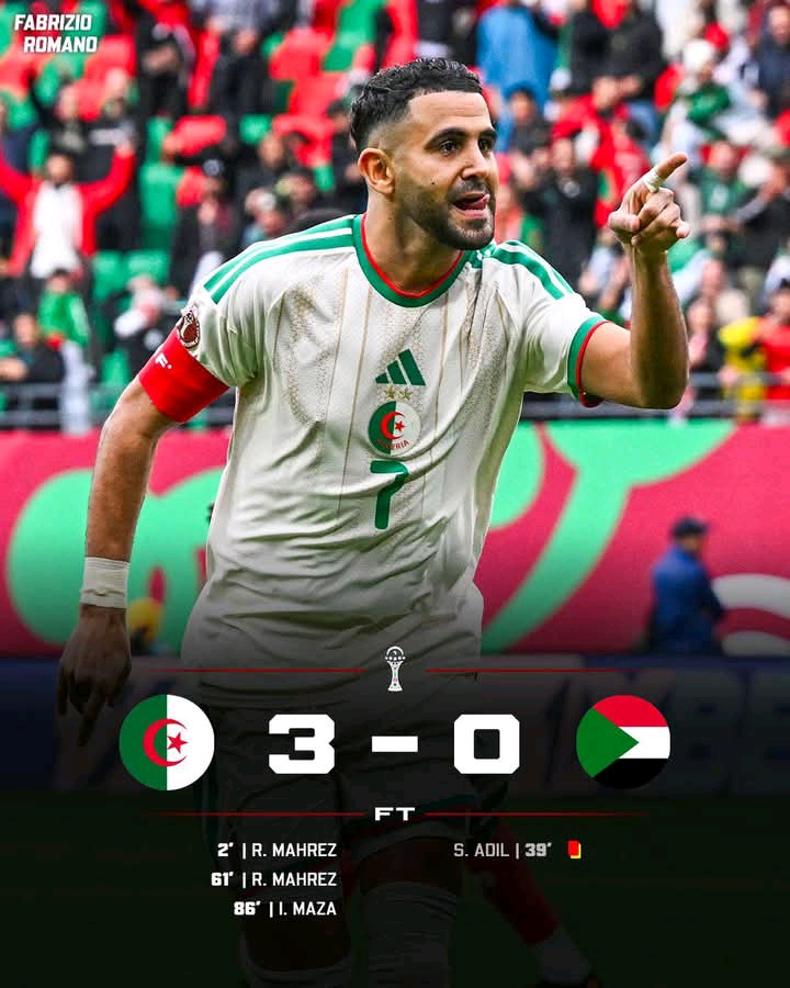 Algeria made a confident start to their AFCON 2025 campaign on Wednesday night as captain Riyad Mahrez inspired a comfortable 3-0 victory over Sudan in their Group E opener.